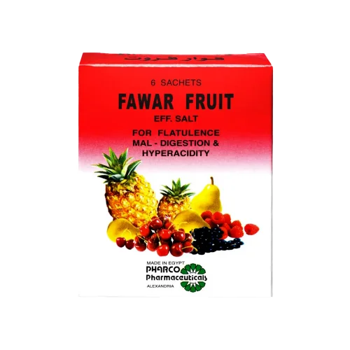 FAWAR FRUIT 6 SACHETS is a delicious effervescent preparation used to speed up digestion and improve general comfort after meals. Its formulation relies on effervescent agents that help neutralize excess stomach acids, reducing feelings of bloating and acidity. It is an ideal choice for those experiencing occasional indigestion or seeking quick relief from post-meal heaviness.