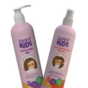 SUPER KIDS CURLY REFRESHING SPRAY +CURLY GEL OFF - بخاخ منعش للشعر الكيرلي للأطفال الخارقين + جل إزالة الشعر الكيرلي