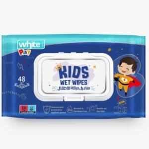 WHITE KIDS WET WIPES 48WIPES - مناديل مبللة بيضاء للأطفال، 48 منديل