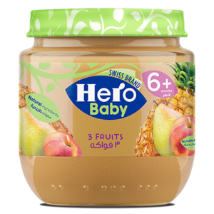 HERO BABY 3 FRUITS 130G JAR - هيرو بيبي ٣ فواكه ١٣٠ غرام مرطبان